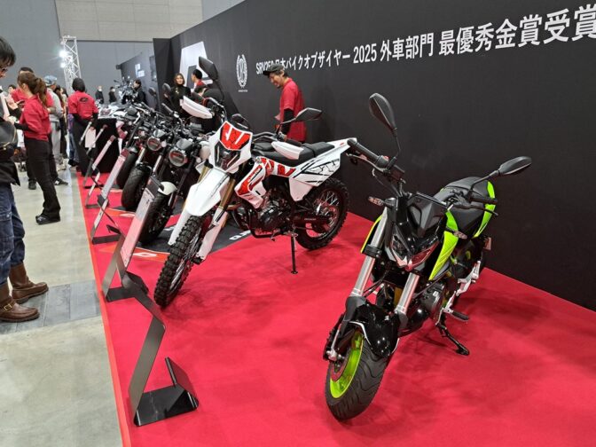 ジャパンモビリティショーのQJMOTERブースに、営業スタッフとし....